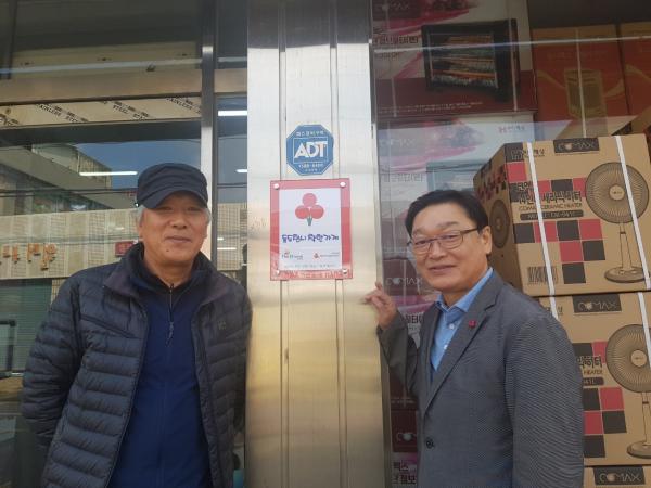 동두천시 중앙동은 지난 8일 관내 어려운 이웃을 위해 나눔을 실천하고 있는 시대전자에 착한가게 현판을 전달했다.