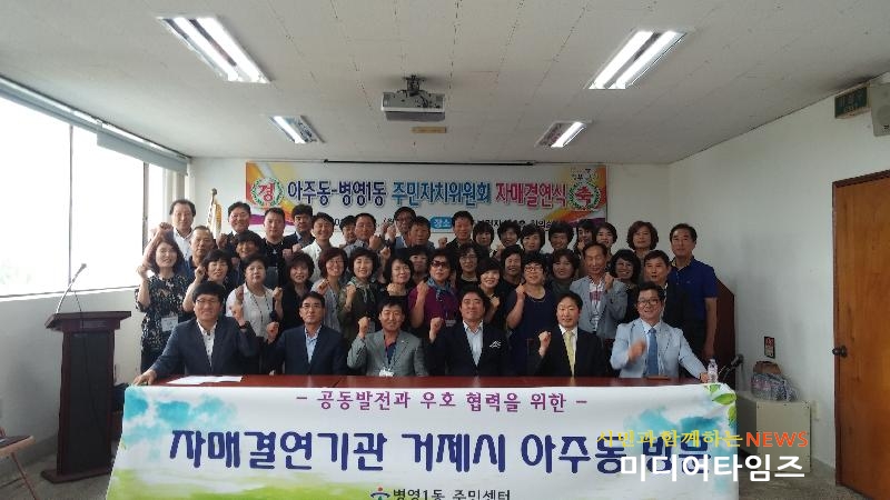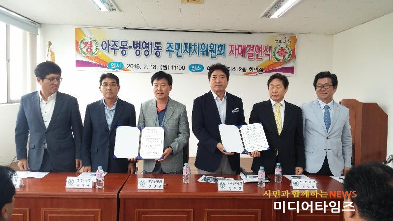 | 아주동과 병영1동 주민자치위원회 자매결연식 모습 |