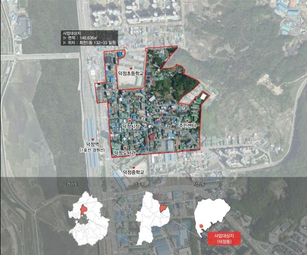 사업대상지인 덕정동 지역은 노후 건축물 비율이 68.8%에 달하고 인근 신도시 개발 등으로 인해 상업과 주거기능의 쇠퇴가 진행되고 있으나 수도권 광역급행철도 GTX-C노선 추진 확정 등으로 경기북부의 광역 교통 거점으로 급부상하고 있는 지역이다.