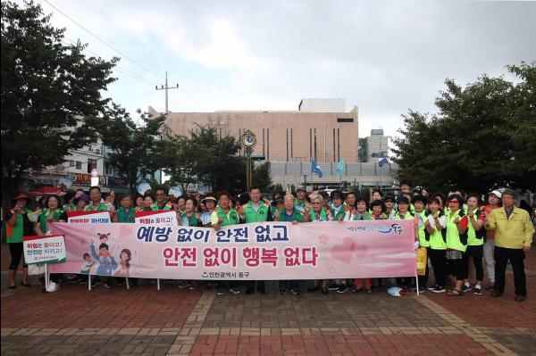구에 따르면 이번 캠페인은 허인환 동구청장 및 관계공무원과 동구자율방재단, 안전모니터봉사단 등 100여 명이 참여한 가운데 지진·국민행동요령, 풍수해보험 가입 및 생활 속 안전 위협요인에 대한 신고요령 등을 실시했다.