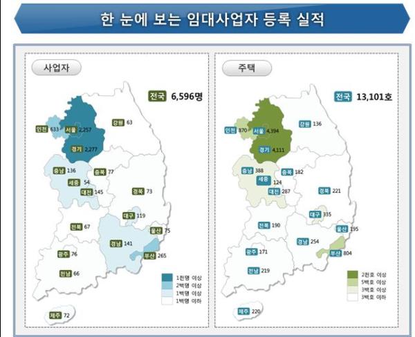 국토교통부는 9월 한 달 동안 6,596명이 임대사업자로 신규 등록했고, 등록 임대주택은 13,101호 증가했다고 발표했다.
