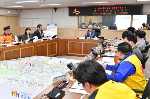 수원시가 10일 시청 재난안전상황실에서 오는 28일부터 11월 1일까지 진행되는 ‘2019 재난대응 안전한국훈련’에 대비해 2차 컨설팅을 했다.