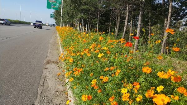 파주시는 올해 자유로 휴게소에서 임진각까지의 자유로 28km 구간에 아름다운 꽃길을 조성하고자 잡관목, 칡덩굴을 제거하고 중앙분리대 및 녹지대에 다양하고 다채로운 꽃씨를 파종하고 관리했다.