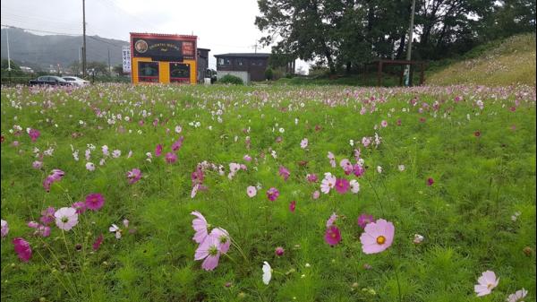 파주시가 지역경제 활성화와 아름다운 거리 조성을 위해 추진한 탄현면 성동리 맛고을에 코스모스가 활짝 피어 관광객의 발길을 사로잡을 것으로 기대된다.