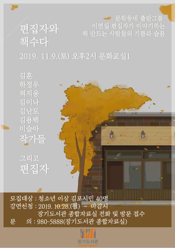 김포시 장기도서관은 오는 11월 9일 오후 2시 장기도서관 문화교실에서 ‘편집자와 책수다’를 진행한다.