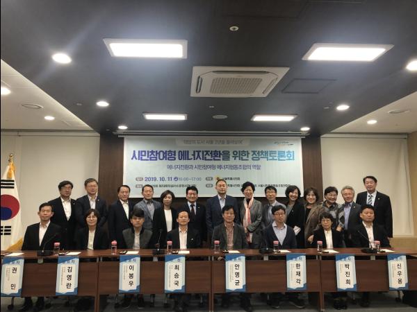 서울특별시의회 김생환 부의장은 11일 ‘시민참여형 에너지전환을 위한 정책토론회’를 ‘에너지전환과 시민참여형 에너지협동조합의 역할’이라는 주제로 서울시민발전협동조합연합회와 공동으로 개최했다.