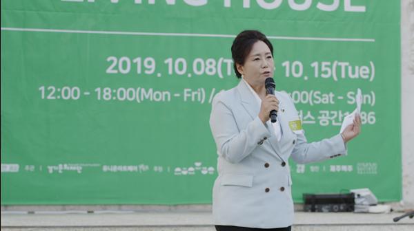 경기도의회 문화체육관광위원회 부위원장 정윤경 의원이 지난 8일 수원 경기상상캠퍼스에서 개최된 ‘2019 아트경기 미술장터’ 개막식에 참석해 축사를 전했다. 올해 2회 째를 맞는 본 행사는 경기도의 젊고 역량 있는 작가를 발굴하고 시장 진출을 돕는 등 작품 감상과 판매가 동시에 가능한 행사이다.