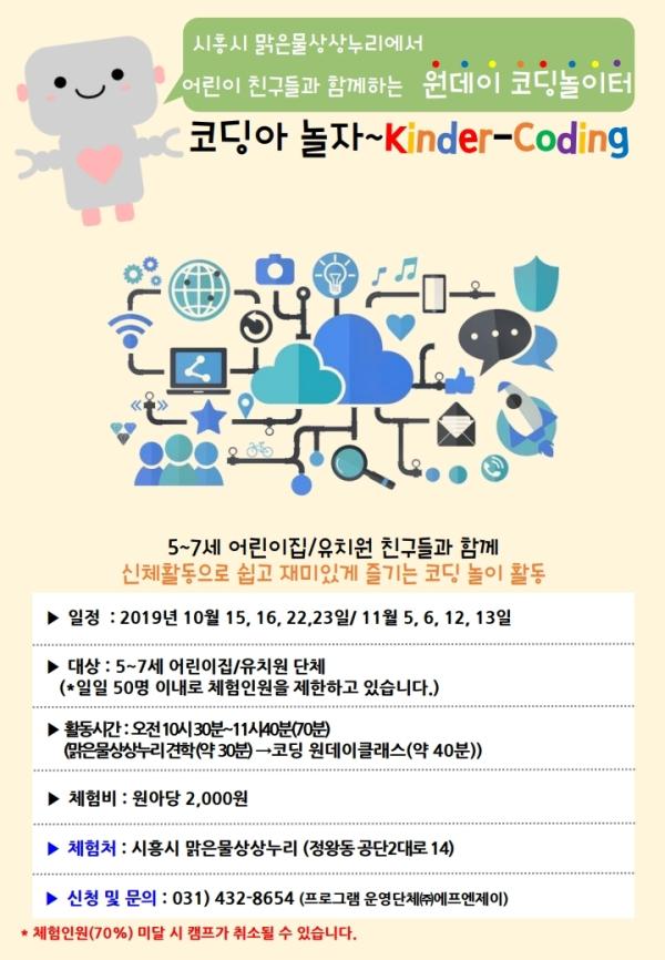 유아 놀이 코딩프로그램은 10월 15일, 16일, 22일, 23일, 11월 5일, 6일, 12일, 13일 오전 10시30분부터 11시 40분에 진행되고, 드론 코딩프로그램은 10월 26일, 11월 9일, 11월 23일 오전 10시부터 12시까지 진행된다.