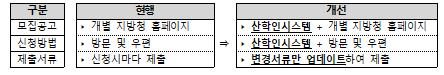 이런 문제점들을 해결하고자 개별 지방중소벤처기업청 홈페이지뿐 아니라 산학인시스템에도 동시에 모집 공고를 게시하도록 개선했다.