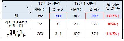 정식 운영 후 9개월간 총 607건의 금융·회계 분석 지원으로 범죄수익을 특정했고, 재산피해 회복을 위하여 총 205건의 기소 전 몰수보전 신청을 지원하는 등 활발한 활동을 펼쳐왔다.