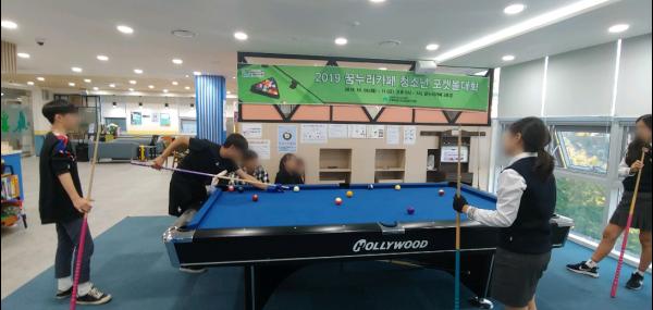 의왕시 오전동주민센터에 위치한 꿈누리카페 3호점에서 청소년들을 위한‘청소년 포켓볼대회’가 열렸다.