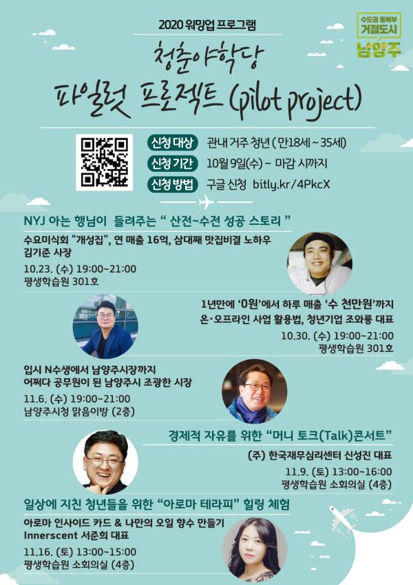 특히, 이번 프로그램은 입시 N수생에서 공무원이 된 남양주시장, 수요미식회 대박 맛집 사장, 월 매출 수천만원 달성 온라인 사업가를 강사로 초빙하여 그들만의 성공 노하우와 인생관을 들어보는 시간을 가질 예정이다.