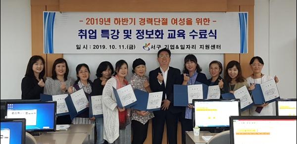 인천 서구는 지난 11일 서구 정보화교육센터에서 ‘2019년 하반기 경력단절여성 취업지원 정보화교육’ 수료식을 개최했다.