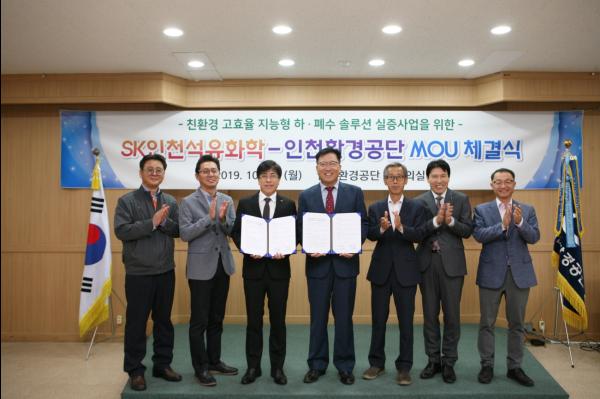 인천환경공단은 지난 14일 본부 대회의실에서 SK인천석유화학과 ‘친환경 고효율 지능형 하·폐수 처리 솔루션 실증사업을 위한 양해각서’를 체결했다.