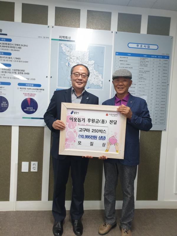 용인시 처인구는 14일 중앙동 빵할아버지로 유명한 모질상씨가 어려운 이웃에 전해 달라며 고구마 250박스를 기탁했다고 밝혔다.