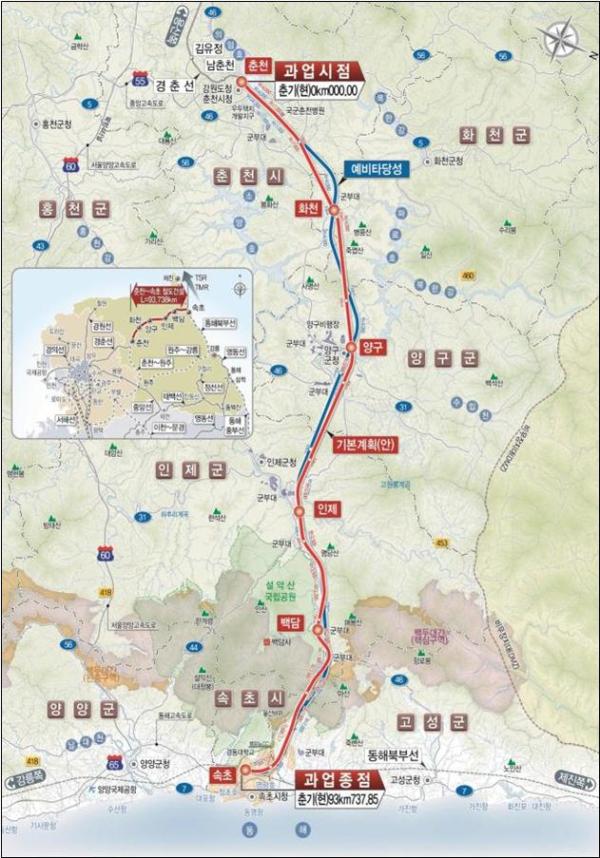 강원도는 지난 30여년간 도민의 숙원사업이면서, 한반도를 동서로 연결하여 낙후된 강원 북부지역의 경제 활성화는 물론 한반도 新물류체계 구축에 견인차 역할을 담당할 ‘춘천~속초간 동서고속화철도’사업이 조기 착수되도록 총력을 기울이고 있다.