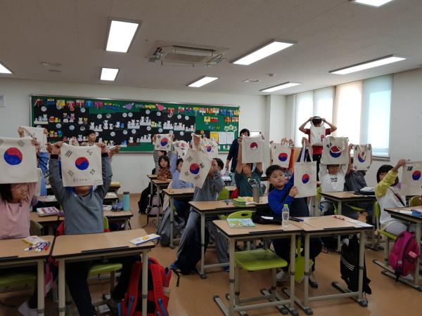 수업에 참여한 학생은 “태극기에 대해 잘 알 수 있는 기회가 되었고, 에코백에 태극기 디자인을 그려서 나만의 가방을 완성해보는 것도 재미있었다.”며, “다음 국경일에 내손으로 태극기를 꼭 달아 보고 싶다.”고 말했다.
