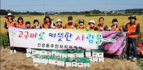 ‘사랑의 고구마 전달’은 인창동 주민자치위원회 특화 사업으로 위원장을 비롯한 위원들이 손수 봄부터 고구마를 심고 가꾸어 어려운 이웃에 전달하는 사업이다. 이날 행사는 ‘고구마로 따뜻한 사랑을~’이라는 슬로건 아래 더운 날씨에도 불구하고 주민자치위원 및 인창동 직원들이 함께 고구마를 수확하는 훈훈한 모습을 보였다. 또한 수확한 고구마는 어려운 이웃에게 전달되어 더욱 뜻깊은 행사가 됐다.
