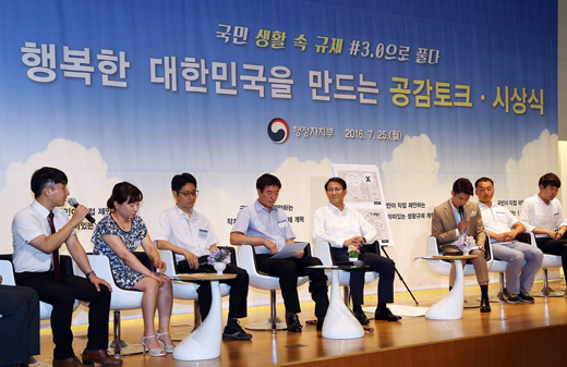 이와 관련, 행자부는 이날 서울 을지로 페럼타워에서 김성렬 행자부 차관 주재로 생활규제 우수과제 사례를 공유하는 ‘행복한 대한민국을 만드는 공감토크’를 개최하고 우수과제 건의자 34명에게 장관표창을 시상했다.
