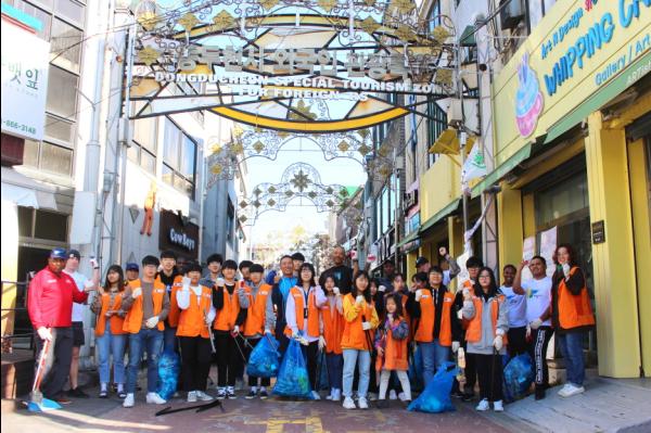 동두천시자원봉사센터 청소년자원봉사 동아리 고고씽은 지난 12일 주한미군 2사단 장병들과 함께 거리 환경정화 봉사를 펼쳤다.