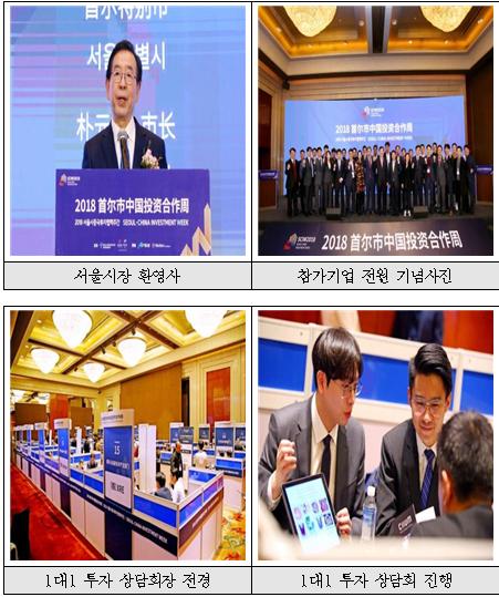서울시는 본 행사 참가기업 20개사의 성공적인 외국인투자 유치를 위해 기업별 핵심 경쟁력 분석부터, 중국 기업들 앞에서 진행되는 피칭 시에 효과적인 기업 발굴을 위한 전략 수립까지 종합 컨설팅을 제공한 바 있다.