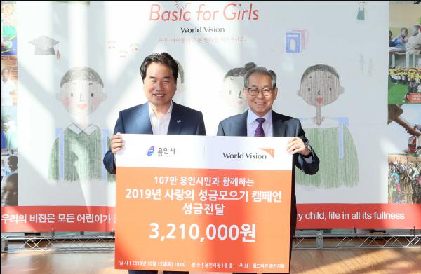 용인시는 월드비전 용인지회가 15일 백군기 시장을 방문해 ‘사랑의 성금 모으기’행사로 마련한 성금 320여만원을 전달했다고 밝혔다.