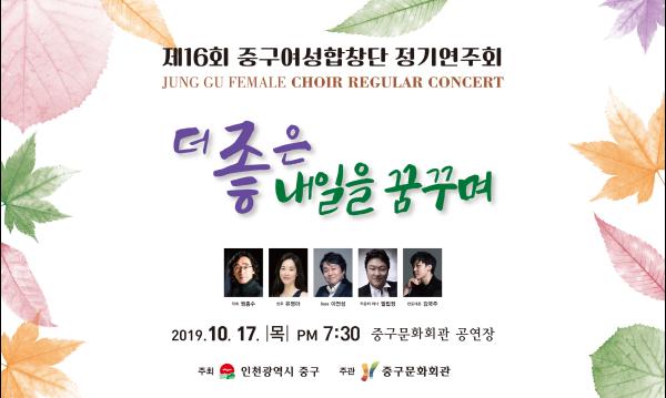 인천 중구의 대표 합창단인 중구여성합창단이 오는 17일 오후 7시 30분 중구문화회관공연장에서 ‘더좋은 내일을 꿈꾸며’ 주제로 제16회 정기연주회를 개최한다.