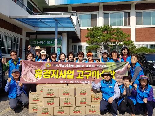 평택시 바르게살기 세교동위원회은 지난 14일 세교동 관내 어려운 이웃에게 전달해 달라며 고구마 10kg 50박스를 기탁했다.