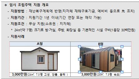 행안부·지자체 합동으로 ‘임시 조립주택 설치사업 추진단’ 구성·운영
