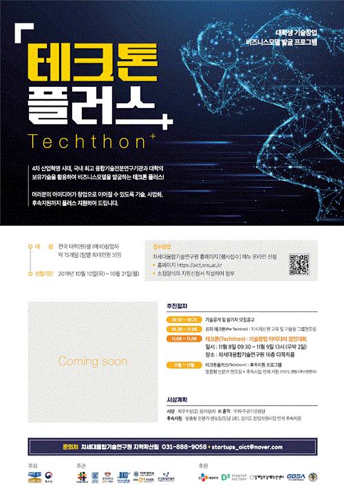 경기도와 차세대융합기술연구원은 대학생 기술창업 비즈니스모델 발굴 프로그램 ‘2019 테크톤플러스’을 추진, 참가자를 오는 21일까지 모집한다.