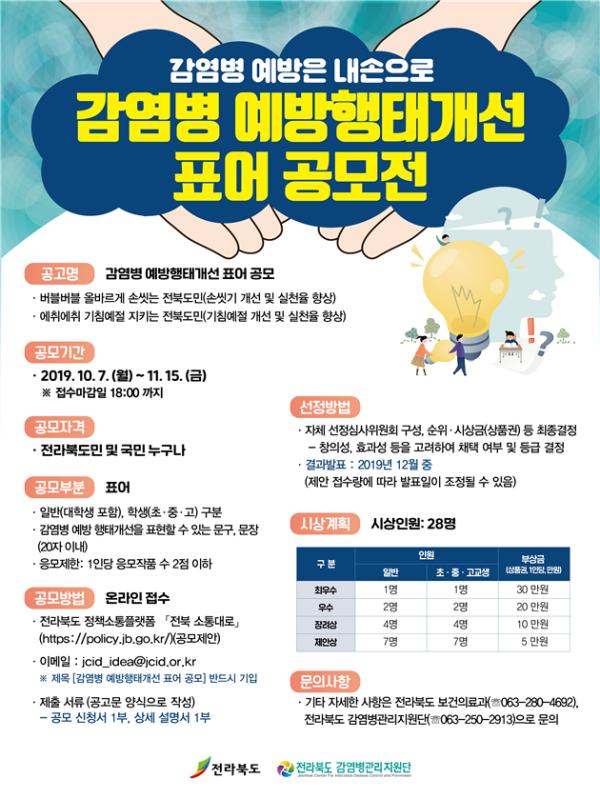 전북도는 감염병 예방을 위한 행태개선에 대해 관심을 유도하고 실천율을 높이기 위해 표어 공모를 추진한다.