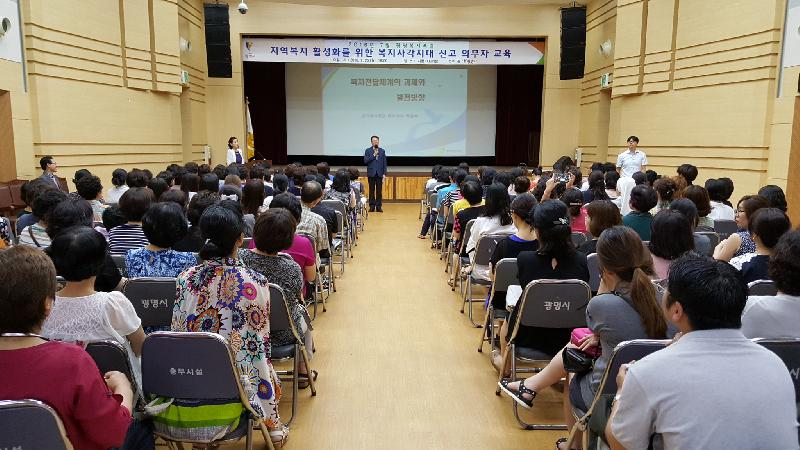 [미디어타임즈= 신정식 기자]광명시(시장 양기대)는 25일 복지포럼을 열어, 복지사각지대에 있는 이웃 발견 시 신고 의무가 있는 사회복지시설장, 종사자 등을 대상으로 시청 대회의실에서 교육을 진행했다고 밝혔다.