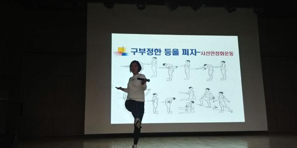 서승우 교수는 강의에서 “책상 앞에 앉아 있는 시간이 많고 컴퓨터나 휴대폰 사용시간이 많아지면서 잘못된 자세로 인해 척추변형이 초래된다”면서 “이러한 증세는 스트레칭으로 교정이 가능하다”고 말했다.