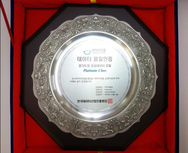 경기도 공공데이터 포털 ‘경기데이터드림’이 한국데이터산업진흥원에서 시행하는 데이터 품질인증에서 최고 등급인 ‘플래티넘 클래스’를 획득했다.