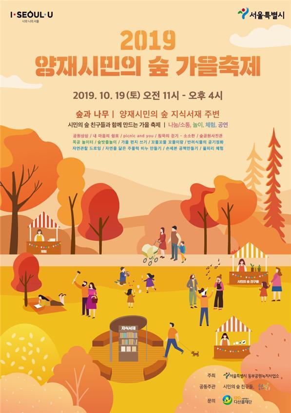 서울시 동부공원녹지사업소는 오는 19일 오전 11시부터 오후 4시까지‘제4회 양재 시민의숲 가을축제’를 개최한다.
