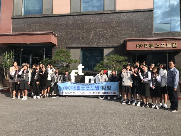 광주시는 지난 15일 ‘혁신교육지구 민간기업 탐방프로그램’으로 경화여중 스토쿠 동아리 학생 26명이 참여한 가운데 초월읍에 위치한 ㈜대흥소프트밀을 방문, 지역기업에 대한 관심을 높이고 진로선택 능력을 함양시킬 수 있는 진로직업 체험 프로그램을 진행했다.