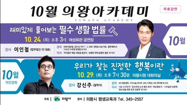 의왕시는 오는 24일과 29일 2회에 걸쳐 10월 의왕아카데미를 개최한다.