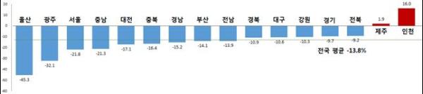 시·도별로 보면, 인천과 제주를 제외한 모든 지역에서 교통사고 사망자 감소세를 유지하고 있다.