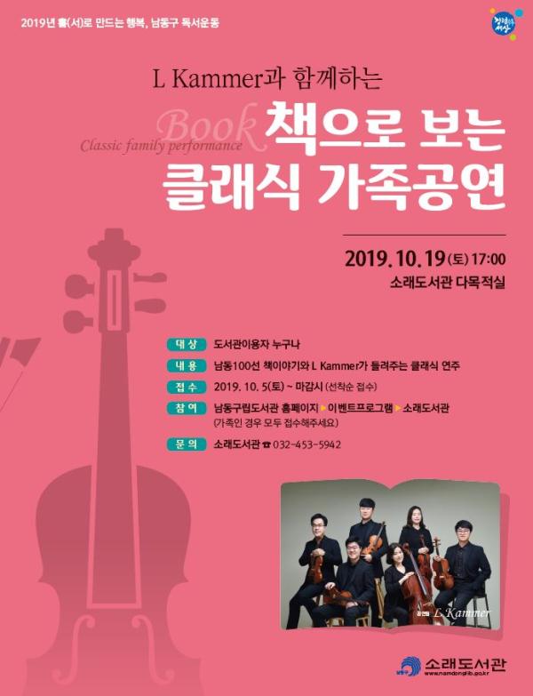 인천 남동구 구립도서관은 오는 19일 오후 5시 ‘책으로 보는 클래식 가족공연’을 소래도서관에서 연다.
