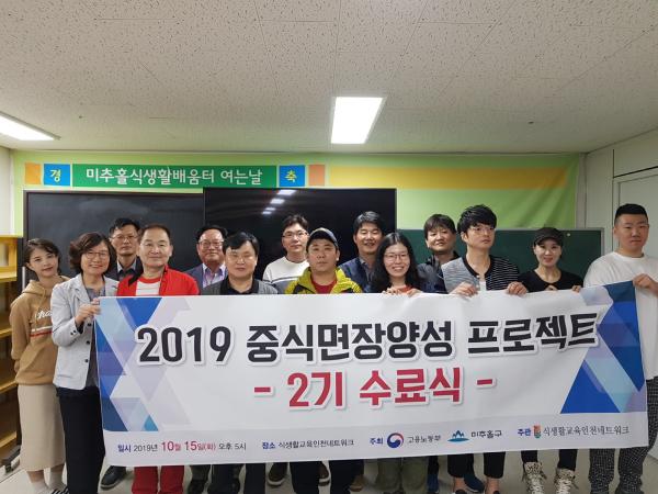 인천 미추홀구는 지난 15일 식생활교육인천네트워크에서 중식업 면장 양성과정 2기 수료식을 개최했다고 16일 밝혔다.