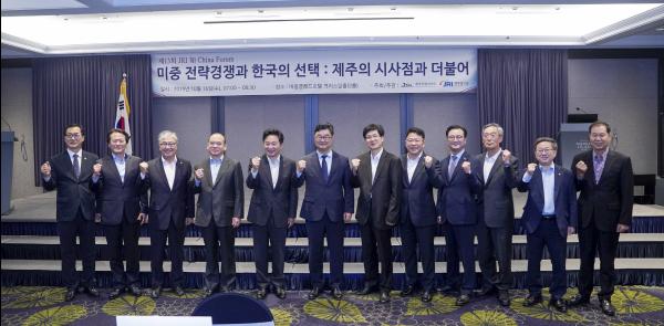 한편 이날 포럼에는 원희룡 지사, 김동전 제주연구원장, 펑춘타이 주제주 중국총영사를 비롯한 도내 사회지도층 인사 100여 명이 참석했다.