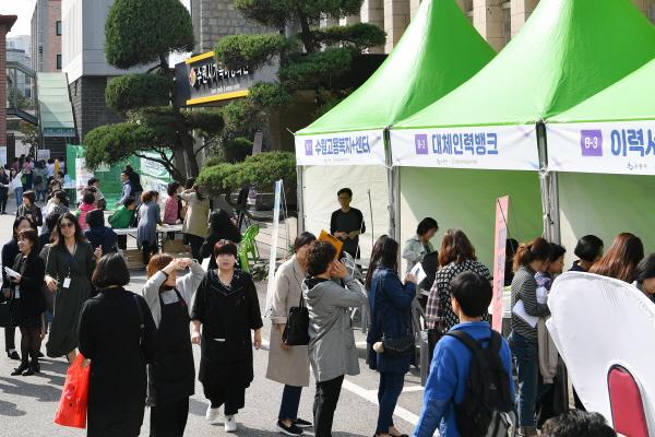 행사장을 찾은 김병태 수원시 일자리정책관은 “임신·출산을 하고, 또 가족을 돌보느라 기혼여성 두 명 중 한 명꼴로 경력단절을 경험하는 게 현실”이라며 “경력단절여성 맞춤형 취업지원으로 경력단절여성의 재취업에 힘을 실어주겠다”고 말했다.