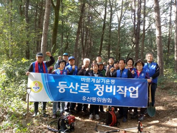 우산동 바르게살기위원회는 지난 15일 등산객 편의와 더불어 단체의 협동과 화합, 질서를 다지는 의미로 덤바우산~장구봉 구간 등산로 및 주변 환경 정비를 실시했다.