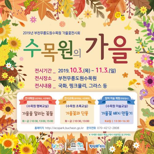부천무릉도원수목원 가을꽃전시회가 ‘수목원의 가을’ 이라는 주제로 오는 11월 3일까지 열린다.