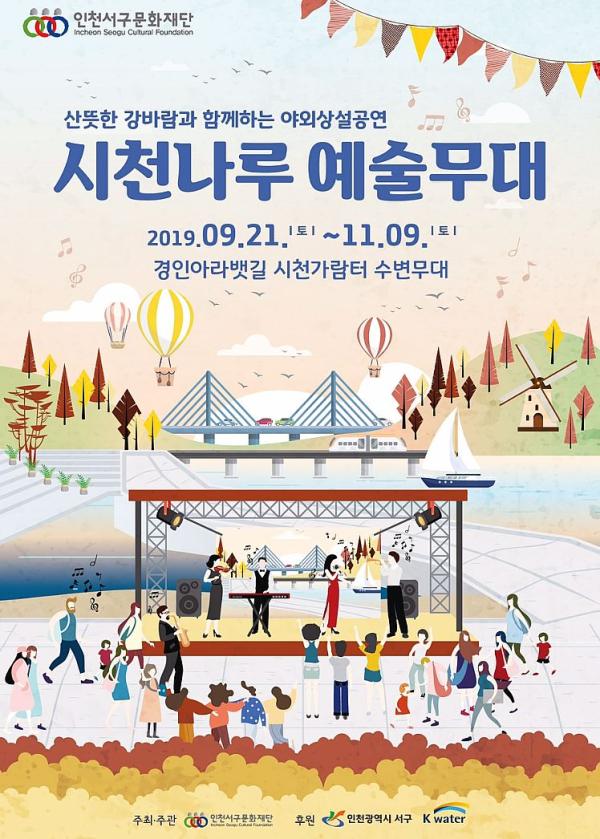 지난달 21일, 인천서구문화재단의 야외상설공연 첫 시리즈인 “시천나루 예술무대”가 시천가람터를 찾은 구민들에게 큰 감동을 전하며 성공적인 첫 시작을 알렸다. 11월 9일까지 진행되는 “시천나루 예술무대”는 매주 주말 오후 3시에 매주 다양한 장르의 야외공연이 시천가람터 수변무대에서 열리고 있다.