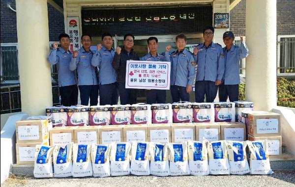 인천 중구 용유 남성 의용소방대 대원일동은 어려운 이웃을 돕는데 사용해 달라며 쌀 10kg 12포, 라면 12박스, 롤휴지 12세트를 용유동 지역사회보장협의체에 기탁했다.