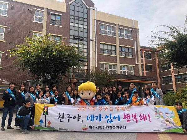 익산시정신건강복지센터는 17일 이리부천초등학교 학생들을 대상으로 ‘친구야, 네가 있어 행복해’ 등굣길 캠페인을 전개했다.