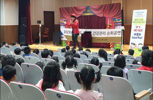 의정부시보건소는 권역별로 운영하고 있는 마을건강센터에서 지난 16일 미취학아동 100여명을 대상으로 의정부시 어린이도서관에서 ‘어린이 흡연연기·아토피 피부염 예방 손 인형극’을 개최했다고 밝혔다.