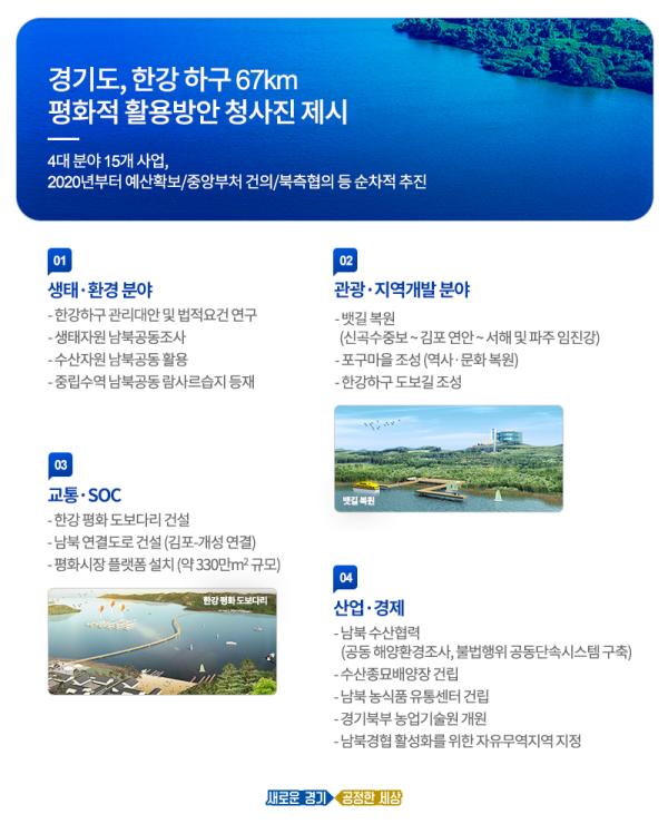둘째, ‘관광·지역개발’ 분야에는 뱃길 복원, 포구마을 조성, 한강하구 도보길 조성 등 3개 사업이 포함됐다.