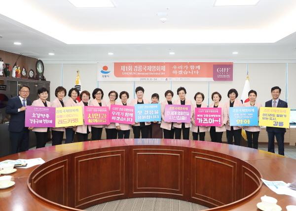 강릉시는 지난 17일 강릉시청 8층 시민사랑방에서 김한근 강릉시장, 이순희 강릉시여성단체협의회 회장을 비롯한 단체회원 17명과 강릉국제영화제 붐조성을 위한 2차 피켓릴레이 행사를 추진했다.